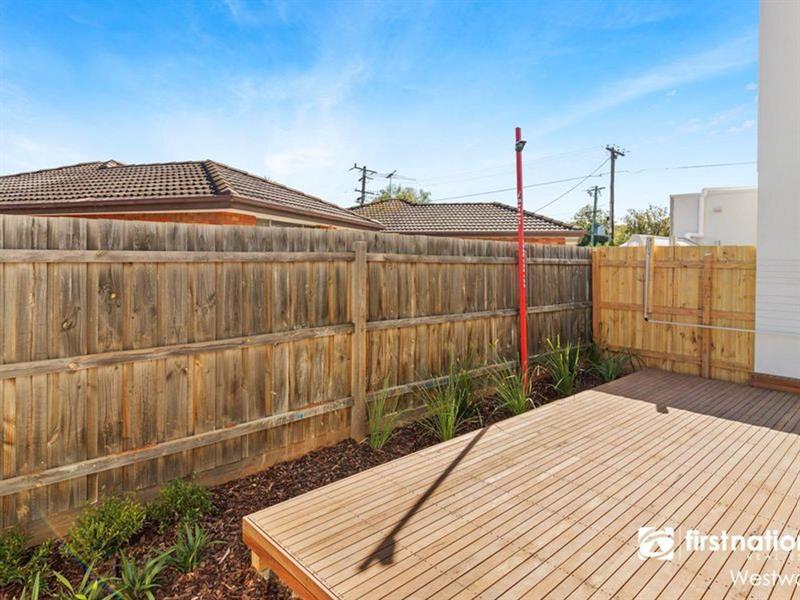 Modern townhouse in central Werribee. Superbly built and located in a position you rarely fine, this townhouse has been designed to suit everyone's needs. Placed right in the heart of Werribee, JELLICOE is just 700 meters from Werribee train station and a short walk to Werribee's ever growing hub of restaurants, cafes, and shopping centres. With an array of schools nearby and the convenience of sublime public transport connectivity, Comprises: - Open plan Living/kitchen/meals area. - Stylish kitchen with Stainless Steel Appliances and dishwasher - 3 great size bedrooms main with W.I.R and ensuite - Main spacious modern bathroom with separate shower recess and bath - Downstairs study - Downstairs powder room - Lovely decked entertainment area Features Include: Split System Heating & Cooling, Single Remote Garage with internal access, floorboards downstairs. PLEASE NOTE: Applicants must view the property before their application/s will be processed. If an applicant applies without viewing the property, their application will be declined until an inspection has taken place. You MUST register. If you do not register for an inspection time - that inspection may not proceed and you will not be able to inspect the premises. By registering your details, you will be INSTANTLY informed of any updates, changes or cancellations for your property appointment. So, DON'T MISS OUT - book an inspection time today! If there are no times set for inspections for this property yet, YOU MUST STILL register and as soon as times are set, you will be advised of the newly set inspection day and time. Every precaution has been taken to establish the accuracy of the above information but does not constitute any representation by the landlord or agent.