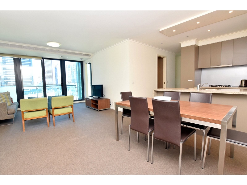 FURNISHED This contemporary style apartment perfectly located near the entertainment and arts hub of Southbank is sure to impress. It offers two bedrooms with an optional study and/or third bedroom and two bathrooms. A vast open plan living/dining area on entry, modern kitchen complete with stainless steel appliances, stone bench tops, dishwasher and ample storage. Master bedroom fitted with mirrored BIRs and full ensuite, central bathroom with shower over bath and European laundry facility. Other features include a light filled balcony adjacent to living area, air-conditioning and heating, Foxtel and NBN ready. off street parking for one vehicle, resort style facilities including indoor swimming pool, gymnasium & BBQ terrace area all located on the 8th floor. Round the clock concierge Enjoy what the Crown Entertainment and retail precinct has to offer or simply enjoy walks along the Yarra River down to nearby Botanical Gardens. Commute to and from the apartment is accessible with immediate access to all freeways or walk to nearby trams and Flinders Street Station. *Please note this building has an embedded network for one or more utility supplies. For further information please speak to one of our Leasing Executives.