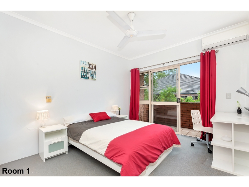 Room 1 - Master bedroom with walk in wardrobe and ensuite Rent $320 + $20 per week for all utilities Four-bedroom unit literally meters from UQ! All rooms are fully furnished, with a modern kitchen featuring stainless steel appliances, internal laundry, balcony access from all bedrooms overlooking The St Lucia Bowls Club. You'll be able to study with Unlimited ADSL2+ Internet in your private lockable room with key locks on each bedroom. 5-minute walk to shops, restaurants, ferry stop and bus stops. 5 minutes on the bus will take you to Toowong Shopping Village and 10 minutes will take you to the city.