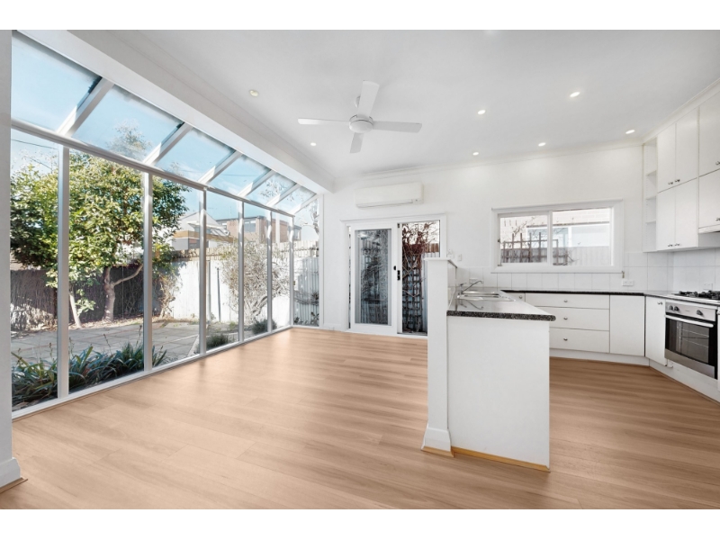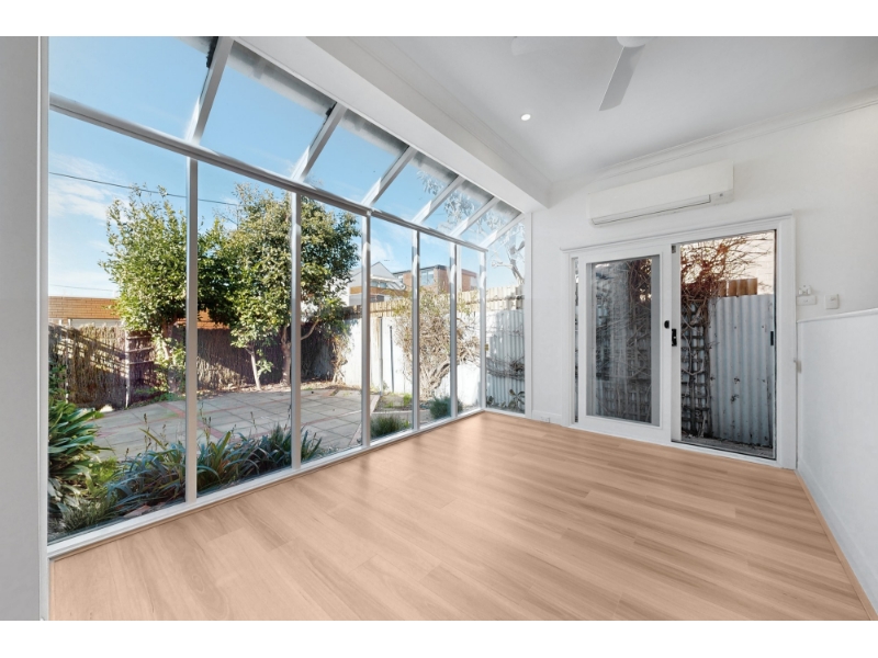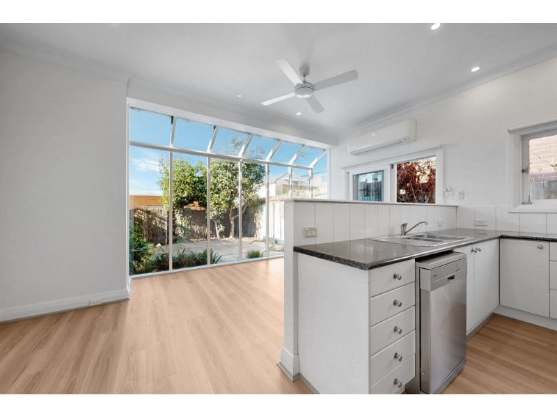 Step into this beautifully restored two-bedroom Victorian residence, where timeless elegance meets modern comfort. Bathed in natural light and boasting two distinct living zones, this home is perfectly positioned just moments from Bay Street’s vibrant cafés, bars, and the beach. Enjoy a refined formal lounge featuring a stunning period mantel and ornamental fireplace, while the sun-drenched conservatory flows seamlessly into a contemporary kitchen and second living/dining area. Full-height windows frame the picturesque paved courtyard and garden, creating a serene indoor-outdoor connection. Both double bedrooms are generously sized, complemented by a sleek modern bathroom and a cleverly integrated European-style laundry. Comfort is assured with ducted heating and split systems in both the front bedroom and rear living space. Original period details—corbelled archways, ceiling roses, and soaring ceilings—add a sense of grandeur and irreplaceable character to this truly special home.