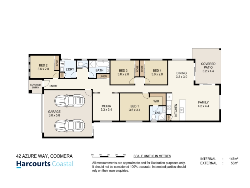 The size of the House for rent at 42 Azure Way, Coomera is 0. To find more accurate property size information, please get in touch with the Agents at harcourtscoastal.