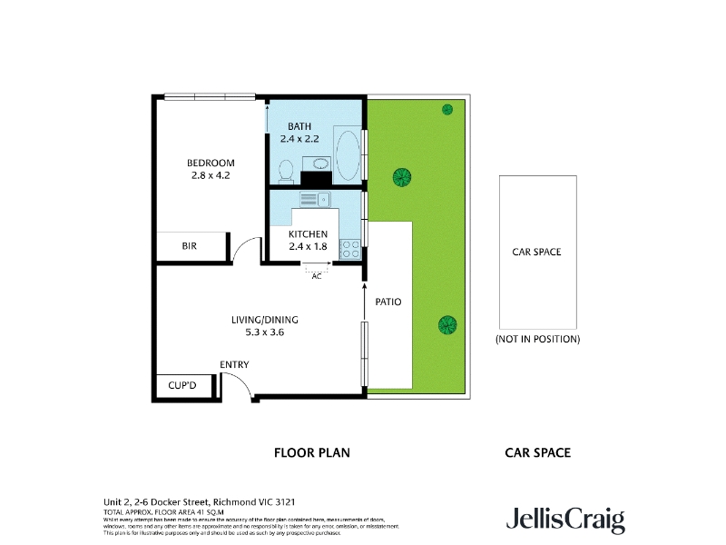 Property features: *New Carpets, paint, blinds, and Split System! *Double bedroom with built in robes. *Huge ensuite bathroom with shower over bath and laundry facilities. *Spacious and light living and dining area with storage and a/c. *Kitchen with electric cooking. *Great sized courtyard leading off the lounge. *Off street parking for one car. 500m to East Richmond Station. 500m to Church Street. *To register to inspect please click “Virtual Tour” or “Book Inspection” so we can keep you informed of inspection times and changes. *Photo ID may be required at open for inspections.