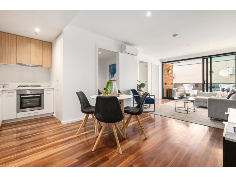 **TO BOOK A TIME TO INSPECT, SIMPLY CLICK ON BOOK AN INSPECTION TIME OR EMAIL AGENT TO BE NOTIFIED OF INSPECTION TIMES. BY REGISTERING, YOU WILL BE INSTANTLY INFORMED OF ANY UPDATES, CHANGES OR CANCELLATIONS FOR YOUR APPOINTMENT. IF YOU DO NOT REGISTER FOR AN INSPECTION, ACCESS MAY NOT BE PROVIDED** Defined by its incredible sense of space, sun-filled interiors and sensational city-fringe address, this beautifully apartment has been designed to cater for a busy yet carefree lifestyle. - The cleverly conceived floorplan includes an open plan living/dining zone with plenty of room for relaxation or easy entertaining. - Stylishly finished, the sleek gourmet kitchen is enhanced by mixed media cabinetry and is equipped with quality stainless steel appliances. - Ceiling-height sliding doors seamlessly extend the living outside to a broad balcony which allows you to sit back and soak up your enviable surroundings. - A stunning contemporary bathroom with floating vanity, walk-in shower & mirrored cabinet storage is also offered while the kitchen has provisions for laundry appliances. - Built-in robes star in the large bedroom while accommodation is enriched by polished hardwood floors and the comfort of split system heating & cooling. - The apartment also includes secure basement parking and storage cage. - Enclosed study with storage, or small second bedroom. Prahran Market, Windsor train station, Chapel Street and Albert Park Lake are just some of the truly fabulous amenities and attractions that are within easy reach of this faultless easy-care package.