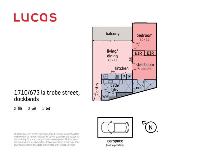 The size of the Unit for rent at 1710/673 La Trobe Street, Docklands is 0. To find more accurate property size information, please get in touch with the Agents at LucasRE.