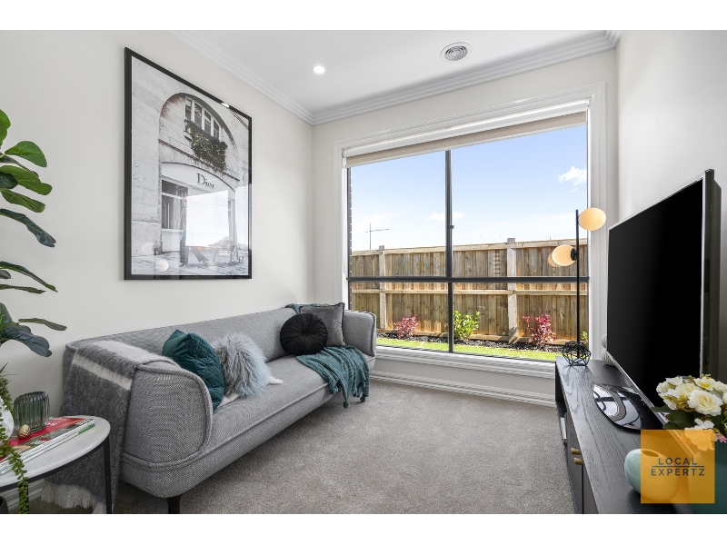 A luxurious dwelling, located in the desirable Thornhill Park Estate, featuring elegant and tasteful finishes. Hosting a spacious layout with three living zones, including an open plan living & dining area, a rumpus/theatre & a formal lounge. The home offers a designer's touch in every corner, with a few highlights including: •4 spacious bedrooms plus a study, including a luxurious master bedroom with a WIR & ensuite with a double shower & double hanging vanity with undermount basins. •An ultra-modern kitchen with state-of-art black glass appliances & built-in microwave, 40mm upgraded stone tops & a huge walk-in pantry. •High ceilings & doors throughout the home with large window frames. •Porcelain tiles in the living and wet areas, upgraded carpets to bedrooms & feature cedar finish ceilings at the entrance & kitchen. •Matt finish feature wall in the living area with a built-in gas fireplace. •Ducted heating & evaporative cooling. •LED downlights throughout the house & pendant lighting in the kitchen. •Porcelain tiled alfresco with a manicured backyard & front garden. •Remote double car garage Located within a short distance from Freeway access making CBD commutes easy, Aspire Childcare Centre, Cobblebank Railway Station, Strathtulloh Primary School, Cobblebank Village hosting Coles, restaurants and recreational opportunities! This spectacular property offers it all! If you think your family deserves the best contact Ash on 0420 428 055. **PLEASE NOTE - IMPORTANT** INSPECTION TIMES will be displayed on this page when the property is ready for viewing. They are subject to cancellation or change until 5.00pm the day before the open. Please check this page prior to attending any inspections.