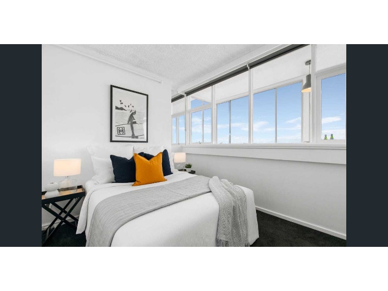 Warm morning sunshine, blissful bay aspects and oversized interior proportions are the hallmarks of a remarkable opportunity presented by this sensational apartment within the landmark Edgewater Towers from where you'll discover a seaside lifestyle like no other. - Fridge and front load washing machine included in rental - Bright, spacious and versatile open-plan living/dining areas - Sun-kissed undercover balcony enjoys relaxing outlook - Updated kitchen features stone surfaces and a dishwasher - Both large double bedrooms come fitted with built-ins - Master to enclosed balcony boasting soothing water views - Combined shower/bath in the stylishly renovated bathroom - Secure car space, air con, laundry provisions in kitchen - Lift access, a/v intercom, handy same-level bike storage - Communal rooftop BBQ terrace enjoys stunning backdrop - Moments to local trams, cafés, cuisine and St Kilda Beach