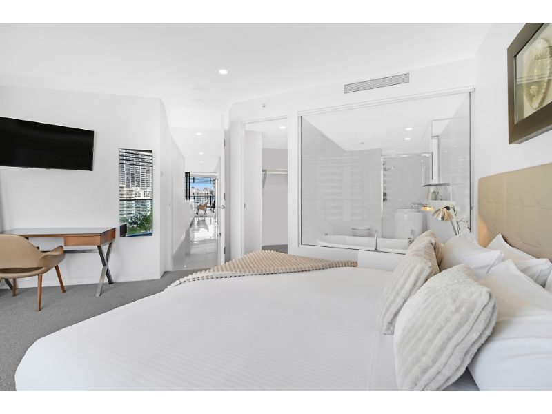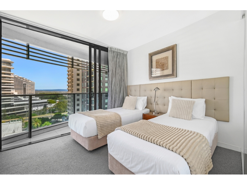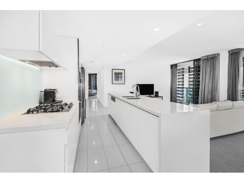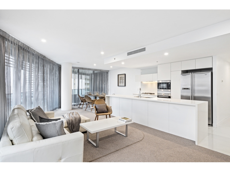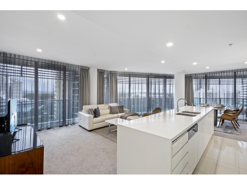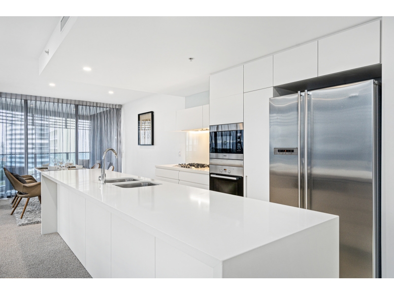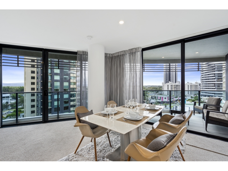 Living life as if each day is a holiday isnt that what we all aspire to? Your chance to experience this dream lifestyle awaits with this luxury two bedroom apartment, perched on the 8th floor of the exclusive Oracle, Broadbeach. Showcased by sweeping 180 degree views which encompass the finest vistas of Main River and the Gold Coast hinterland, its enticing appeal is emphasized by the light and bright interiors and the refined and upgraded finishes which feature throughout. Take advantage of the sun-infused, open plan living, dining and kitchen zone which offers ample space for indoor relaxation and entertaining and integrates seamlessly with the large, wraparound balcony. A generously proportioned master bedroom is accompanied by a contemporary ensuite. Theres also another modern bedroom and bathroom, a spacious balcony plus one secure car space and an assortment of high-quality resort amenities, including, pool, spa and an executive lounge. Property Specifications: Luxury, light-filled apartment on the 8th floor of the exclusive Oracle Broadbeach; Extra large floor plan 136sm Each bedroom has a private balcony, privately positioned second bathroom Two bedrooms, two bathrooms with balcony Smart TV in living room and second tv in bedroom Open plan and modern kitchen, living and dining, infused with natural light; Main bedroom with walk-in robe and ensuite with contemporary inclusions; Large balcony, set against the backdrop of stunning Main River and hinterland views; Water filtration system for a healthy drinking water Secure parking space with a lockable Parking Barrier Oracle Towers Amenities: Heated pool and spa plus sauna and separate steam room; Two separate BBQ areas, one with Teppanyaki cooking facilities; 1000m2 (approx.) of Zen gardens with Tai Chi lawn and herb garden; Well equipped gymnasium, security and CCTV surveillance Fast Broadband included Access to Residents-only Lounge Access to Peppers Privleges Memberships which offering a 24/7 professional onsite management for all after hours emergencies, parcel acceptance by reception, housekeeping by Peppers professional cleaning team with sheets and towels change over (at tenant expense), a great lifestyle choice for a professional who wants to live like in a hotel. Positioned in a prestigious enclave, within easy reach of boutique shops, bars and award winning restaurants, youre also just moments from Pacific Fair Shopping Centre, Star Casino and Gold Coast Convention Centre. The light rail is just 100m away and patrolled, white sandy beaches are a 250m stroll from this exclusive complex. If travel beckons, youre only 25 minutes north of Gold Coast airport and an easy one hour drive south of Brisbane. Take advantage of this exceptional opportunity and arrange an inspection today. Disclaimer: Whilst every effort has been made to ensure the accuracy of these particulars, no warranty is given by the Landlord or the agent as to their accuracy. Interested parties should not rely on these particulars as representations of fact but must instead satisfy themselves by inspection or otherwise.