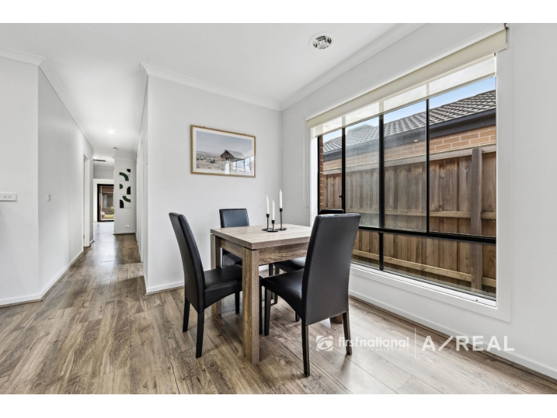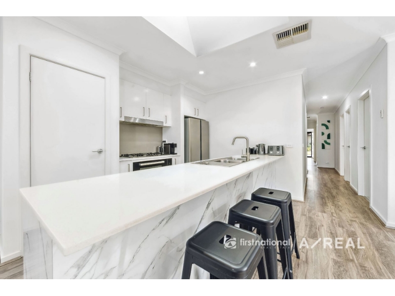 Discover a charming home that combines a flowing floor plan with contemporary features, neutral hues, soaring ceilings, and elegant timber floorboards-ideal for your growing family. The heart of the home is a sleek, modern kitchen featuring stone countertops, 900mm stainless steel appliances, and a spacious island bench. This area effortlessly connects to a dining and living space that opens up to an alfresco area, perfect for year-round outdoor entertaining. The sleeping quarters include three generously sized bedrooms, with the master boasting an ensuite and walk-in robe. The central bathroom is stylishly tiled, complete with a bath and separate shower. Enjoy modern comforts such as ducted heating and cooling, a lock-up garage with internal access, and a prime location offering easy access to Mernda Junction shopping, Mernda Train Station, and more. Don't delay, inspect today! DISCLAIMERS *It is a requirement to inspect the property prior to applying. **Inspection times and property availability are subject to change or cancellation without notice. We highly recommend registering for an inspection should you wish to attend to avoid disappointment for any changes or cancellations. ***Whilst Areal Property & First National South Morang has taken care in the preparation of the photos and description of the property, interested person(s) are advised to make their own enquiries and satisfy themselves in all respects of the property they wish to lease. ****Note: Some images used have been virtually staged.