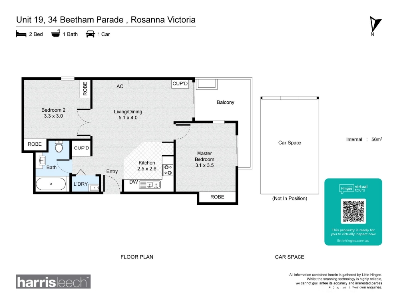 The size of the Unit for rent at 19/34 Beetham Parade, Rosanna is 0. To find more accurate property size information, please get in touch with the Agents at harrisleech.