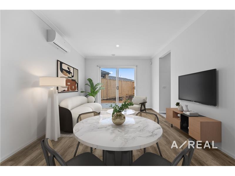 A beautiful example of modern single-level living, this well-designed home offers a perfect combination of style, comfort and practicality. Inside, the open-plan layout is filled with natural light, creating a welcoming and relaxed atmosphere. The spacious living and dining area flows into a stylish kitchen equipped with quality appliances, a subway-tiled splashback and generous storage. The master bedroom is privately positioned at the front of the home and features its own ensuite and walk-in robe. Two additional bedrooms with built-in robes, a central bathroom, ducted heating, split system air conditioning, a good-sized backyard and a single garage complete the home. Located close to Wyndham Vale train station, Greens Road, Manor Lakes shopping centres, Manor Lakes Secondary College, Wyndham Vale Primary School and the Princes Freeway, this home offers both convenience and comfort in a family-friendly setting. **Scheduling your property inspection is now a breeze! Simply click on the "Book an Inspection" or "Request a Time" button to secure your appointment. You'll instantly receive a confirmation and be kept up-to-date with any alterations or cancellations concerning your scheduled visit. Please be aware, inspections may be subject to cancellation if no bookings are registered. Make your booking today and take the first step in finding your ideal home**