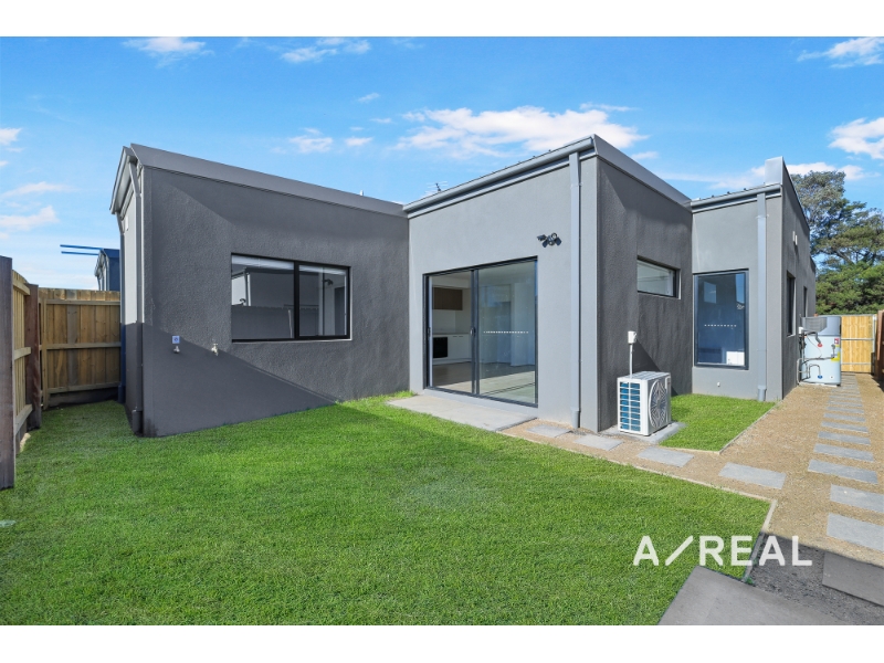 Embrace modern living in this beautifully designed, home located in the sought-after Azure at Arcadia community. Thoughtfully crafted for comfort and style, this home offers an exceptional opportunity for professionals, couples, and families looking to enjoy the ease of low-maintenance living in a well-connected neighbourhood. From the moment you step inside, you’ll be welcomed by a light-filled, open-plan living and dining area that offers both functionality and a sense of space. The contemporary kitchen flows effortlessly into this central zone, making it perfect for hosting guests or spending quality time with loved ones. Sleek finishes, quality appliances, and clever design elements ensure everyday tasks feel effortless and enjoyable. All three bedrooms are fitted with built-in wardrobes and feature wall-mounted heaters, providing a cozy and private retreat for every member of the household. The central bathroom has been appointed with stylish modern touches, including chic tiling, a spacious shower, and a well-proportioned vanity. The main living area is serviced by a split system heating and cooling unit, keeping the home comfortable throughout the seasons. Step outside to a private, low-maintenance courtyard — the perfect spot to unwind, enjoy a quiet morning coffee, or entertain friends on the weekend. Additional features include a secure single-car garage with internal access, offering both convenience and peace of mind. Perfectly positioned in the heart of Officer, this home is just moments away from a wide range of amenities. You'll enjoy easy access to local schools, parklands, shopping precincts, and public transport, ensuring everything you need is right at your doorstep. With its unbeatable location, stylish design, and thoughtful layout, it’s ready to impress and waiting for you to move in.