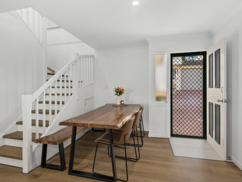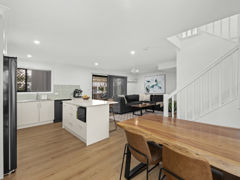 Step inside this beautifully renovated townhouse, where thoughtful design, modern finishes, and low-maintenance comfort define everyday living. Every detail has been thoughtfully curated to create a home that feels brand-new and effortlessly refined. The ground floor welcomes you with an air-conditioned open plan living and dining area, complemented by abundant of natural light. At the heart of the home, the modern kitchen features stone benchtops, sleek cabinetry, a stunning island bench, and contemporary green feature tiling, striking the ideal balance between style and practicality. Flowing seamlessly from the living space, the expansive covered patio offers the ultimate setting for outdoor entertaining or relaxing. Upstairs, you'll find three generous bedrooms, each with built-in robes and ceiling fans. The air-conditioned master suite is a true retreat, boasting its own private balcony and a sleek ensuite designed to match the luxurious style of the main bathroom. Both bathrooms impress with modern textured cabinetry, designer tiles, brushed-gold fittings, and walk-in showers for a sophisticated finish. Enjoy the convenience of a secure single garage, a stylish downstairs powder room, and low-maintenance landscaping that complements the home's effortless appeal. Positioned just minutes from Westfield Chermside, local cafes, transport, and leafy parks, this property delivers a lifestyle of ease and sophistication. Features: - Unfurnished - Fully renovated throughout - 3 bedrooms with built-in robes & ceiling fans - Air-conditioned main bedroom with ensuite & private balcony - Stylish, renovated bathrooms with quality finishes - Modern kitchen with stone benchtops & modern appliances - Air-conditioned open-plan living and dining - Expansive covered patio - Secure single garage & low-maintenance yard - Unbeatable location near shopping, dining, parks & transport