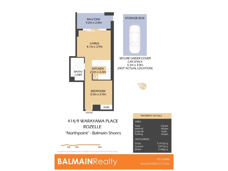 The size of the Unit for rent at 414/9 Warayama Place, Rozelle is 63. To find more accurate property size information, please get in touch with the Agents at balmainrealty.