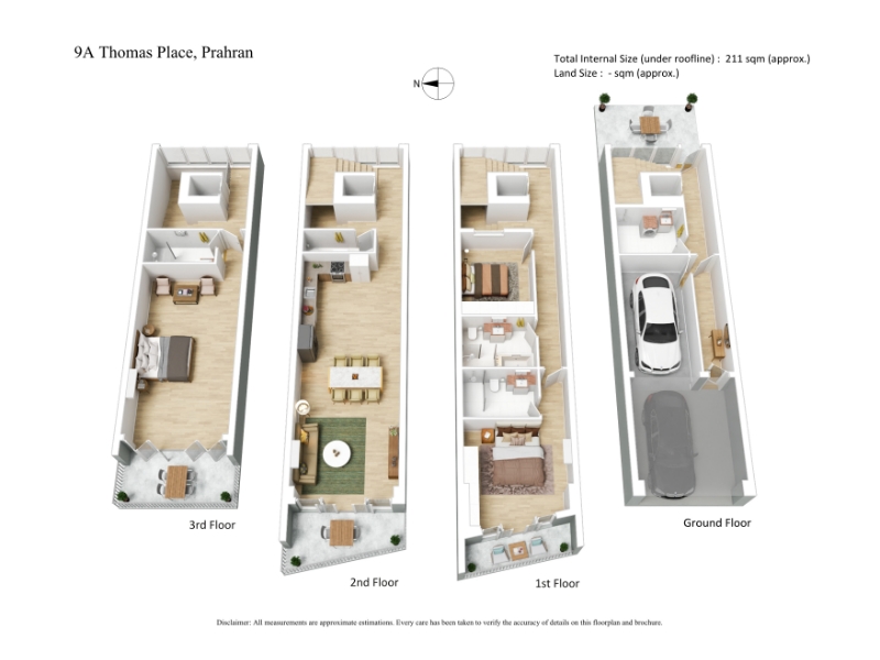 Positioned in one of Prahran’s most sought-after locales, this architecturally designed four-storey residence delivers contemporary comfort, lifestyle convenience, and impressive versatility, just moments from Greville Street, Chapel Street, and the Melbourne CBD. Thoughtfully zoned across four levels, the home comprises three generous bedrooms, including a privately situated master suite with ensuite and its own balcony. A second bedroom with robes and easy access to a central bathroom, while the top-floor bedroom enjoys city views and is serviced by its own ensuite - perfect for accommodating family, guests, or flexible work-from-home needs. The spacious open plan living and dining level is filled with natural light and flows seamlessly to a private balcony, ideal for entertaining or relaxing. The well-appointed kitchen includes quality stainless steel appliances, ample storage, while a conveniently located powder room completes the space. Featuring split system heating and cooling, timber flooring throughout, and the rare inclusion of both an internal staircase and private elevator, the home offers comfort and accessibility in equal measure. Three balconies and a private rear courtyard provide multiple options for outdoor enjoyment across all seasons.