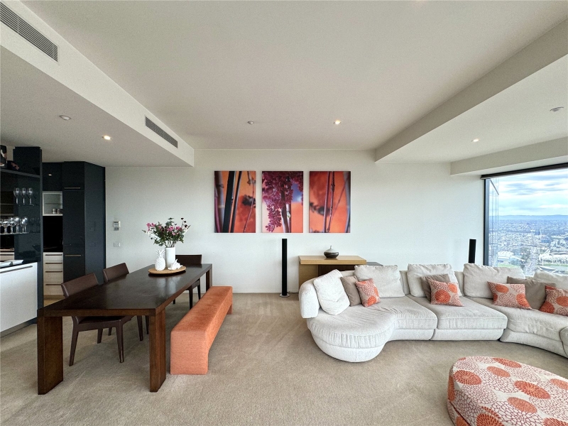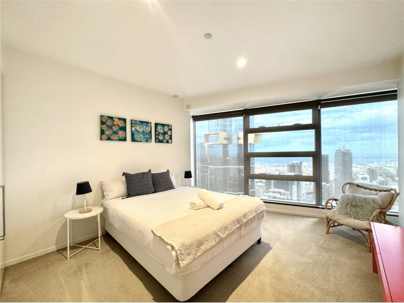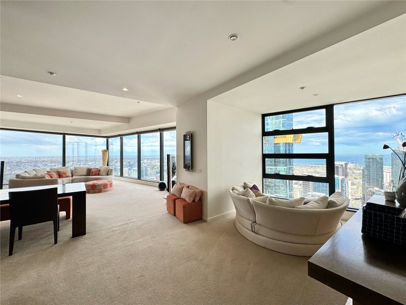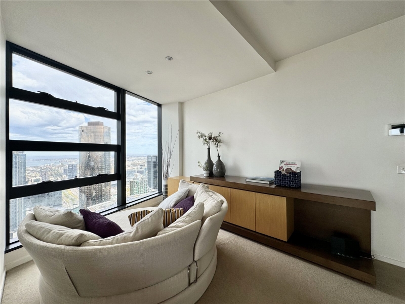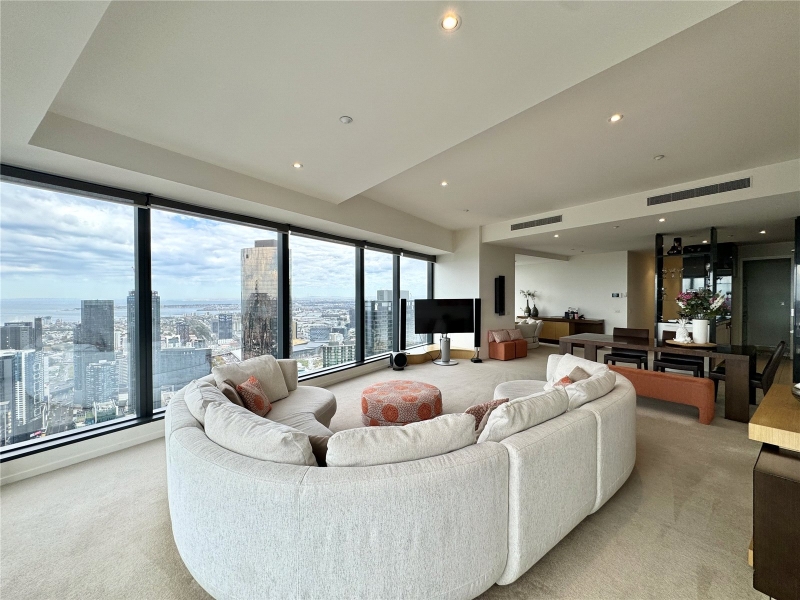 FURNISHED - Discover unparalleled luxury and breathtaking views in this exquisite apartment at the iconic Eureka Tower. With priceless 180-degree vistas, this residence offers an iconic views that transform every day into a work of art. Nestled in the heart of Melbourne, this apartment boasts an amazing central location. Enjoy effortless access to public transport with nearby train stations, trams, and the brand-new Metro Town Hall station, ensuring that the entire city is at your doorstep. Within walking distance, you’ll find Melbourne’s vibrant cultural scene. Immerse yourself in one of the world’s most liveable cities, where you can enjoy fine dining along the iconic Yarra River or unwind in picturesque parks. With Citylink nearby, regional Victorian cities are just a drive away, making this location as convenient as it is desirable. Offering space, style, and quality, the open plan living and dining zone is built for entertainment with floor to ceiling windows that present amazing views from any vantage.. The generously sized master bedroom comes with a built-in-robe, and a stylish ensuite. The second bedroom is also generous in size, as well offering more sensation views, as well as a built-in-robe. Eureka Tower also includes an indoor lap pool, gym, sauna, private cinema room, and majestic entrance foyer with 24-hour concierge and security. *Views shown are indicative only and may be from a higher or lower level. Furniture is for display purposes only and might not be included. Any dimensions shown are approximate. Any areas shown indicate total approximate titled area.*