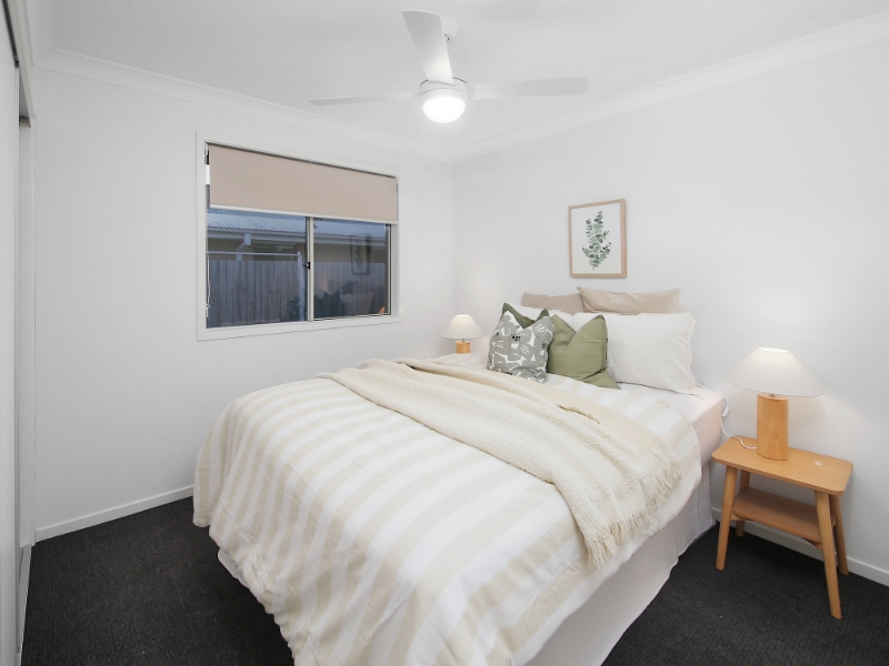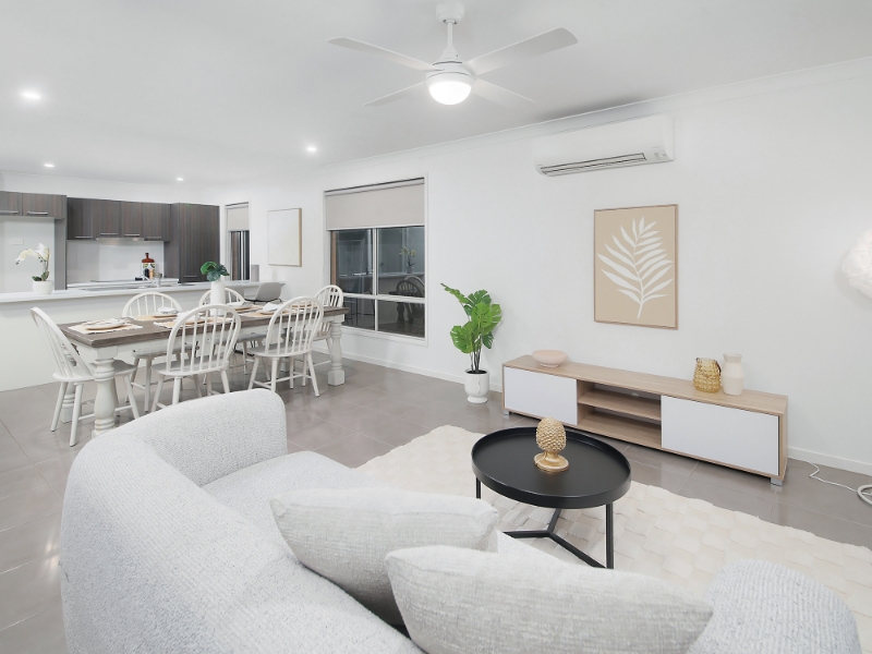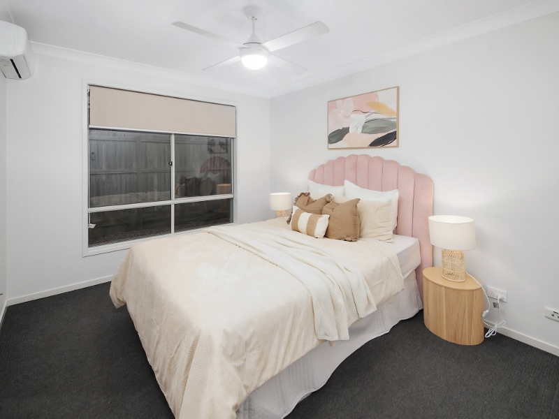 This beautifully presented residence offers a low-maintenance lifestyle in a sought-after location. The home features a practical layout across a 450m block, ideal for families, professionals, or anyone seeking comfort and convenience. Property Features: 4 bedrooms, all with ceiling fans and block-out blinds Master suite with walk-in wardrobe and ensuite Second bathroom with separate powder room Separate lounge plus open-plan family, dining, and kitchen area Modern kitchen with two-tone cabinetry, electric cooking, breakfast bar, and appliances Sliding doors opening to a covered alfresco and secure backyard - perfect for children and pets 2 reverse-cycle air-conditioning units living master plus ceiling fans throughout Double automated garage with 2-car accommodation Fully fenced, low-maintenance backyard with established landscaping Location Benefits: Quiet cul-de-sac in an emerging community Close to Kruger State School and Bellbird Park State Secondary College Nearby childcare, parks, shops, and dining options Easy access to bus and rail networks and Ipswich Motorway Only 28km to Brisbane CBD