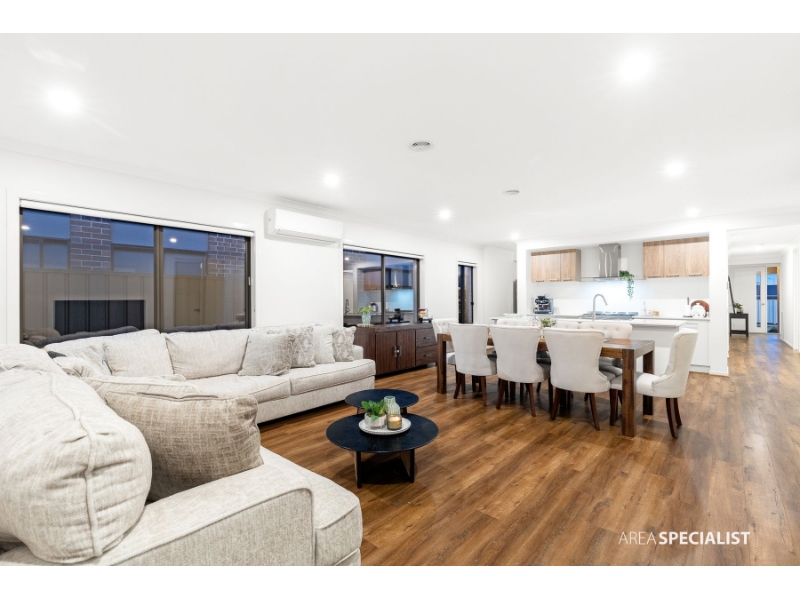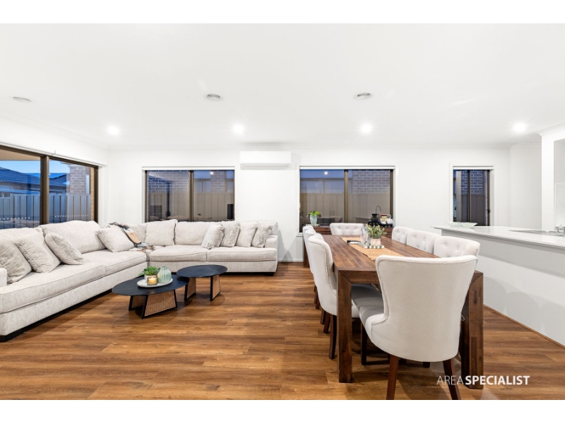 Located in Werribee’s Cornerstone Estate, this modern family home offers comfort, convenience, and flexible living spaces perfect for families and professionals. Accommodation includes four well-sized bedrooms, with the master featuring a walk-in robe and ensuite with double vanity, stone benchtops, and a large shower. The remaining bedrooms have built-in robes and are serviced by the central bathroom with bathtub and separate shower. The home provides three living zones, including a formal lounge, a versatile family room (or optional fifth bedroom), and a spacious open-plan living/dining area that connects to the kitchen and alfresco. A built-in study nook adds further practicality for working or studying from home. Key Features: - Four bedrooms, master with WIR & ensuite (double vanity & stone benchtop) - Central bathroom with bathtub & separate shower - Three living zones including optional 5th bedroom/family room - Modern kitchen with stone benchtops, 900mm appliances, dishwasher & walk-in pantry - Open-plan living & dining flowing to alfresco - Built-in study nook - Ducted heating throughout - Split-system heating & cooling in master & main living - CCTV cameras for added security - Spacious laundry with external access - Multiple storage options including linen & broom cupboards - Double remote garage with internal access - Low-maintenance backyard with concreted alfresco Location Highlights: - Walking distance to 7-Eleven, KFC & the new Coles - Close to Manor Lakes & Harpley shopping centers - Nearby schools: St Joseph’s Catholic Primary, Lollipop Creek Primary, Wallaby Ngarrwa Secondary College & Manor Lakes P–12 College - Easy access to Wyndham Vale Train Station, parks & playgrounds --------------------------------------------------------------------------------------------------- Disclaimer: Every care has been taken to verify the accuracy of the details in this advertisement; however, we cannot guarantee its correctness. Prospective purchasers are requested to take such action as is necessary, to satisfy themselves of any pertinent matters. * If an Inspection time isn’t available, please register your details to receive notifications and updates when Inspections become available. * Inspection Times and Property Availability are subject to change or cancellation without notice. We highly recommend registering for an inspection you are going to attend to avoid disappointment for cancellations.