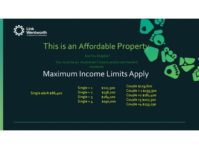 600m from Narellan Town Centre with Supermarkets, Cinemas and over 100 stores. 150m from Narellan Police Station , Bus Stop at Front of Complex. • One good size bedroom with built-in • Bathroom with a super sized shower • Large kitchen with stone benchtops • SMEG gas cooktop and oven • Dishwasher included • Internal laundry • Lock up garage • Backyard with shed ***NOTE*** HOUSEHOLD INCOME LIMITS APPLY - The rent is discounted from normal market rent under the State Environmental Planning Policy (SEPP) affordable rental housing program. The income limits vary depending on the number of people in the household. To be eligible to apply, applicants must be Australian citizens and/or permanent residents. To be eligible to apply, Applicants must also be Australian Citizens and/or permanent residents. Income Limits by Household Size (before tax): Single Adult $86,400 Single + 1 $112,300 Single + 2 $138,200 Single + 3 $164,100 Single + 4 $190,000 Couple $129,600 Couple + 1 $155,500 Couple + 2 $181,400 Couple + 3 $207,300 Couple + 4 $233,290 If you have answered YES to all of the above please send us a request for inspection through realestate.com.au. Please register you interest now to be kept informed about inspection times.