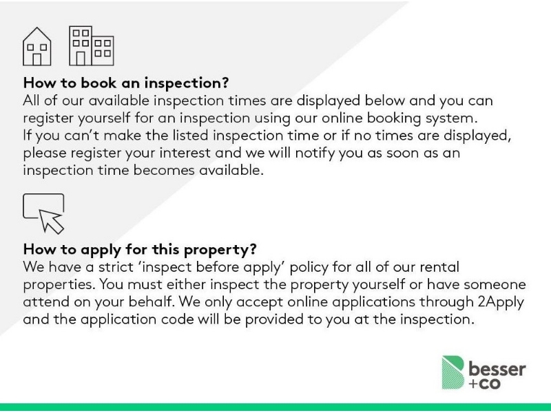 This beautifully designed 3-bedroom, 2-bathroom apartment combines timeless style with everyday comfort in one of Caulfield’s most desirable pockets – the prestigious Harvard complex. What we love about this apartment: • Warm and inviting interior with rich chocolate-toned timber flooring throughout main living areas • Spacious open-plan living and dining zone designed for relaxation and entertaining • Seamless flow to a generous, private balcony – ideal for alfresco dining or morning coffee • Sleek galley-style kitchen with premium stainless steel appliances: gas cooktop, under-bench oven, dishwasher and integrated fridge • Ample kitchen storage, deep sink, and versatile island bench for everyday living and entertaining • Three well-proportioned bedrooms, all featuring built-in robes • Master suite with private ensuite for added comfort and privacy • Stylish bathrooms with large glass showers, floating vanities, and elegant matte black fittings throughout Additional features: • 2 secure stacker basement car parks • Study nook, perfect for working from home • European laundry • Reverse-cycle split system heating and cooling • Premium location within walking distance to Caulfield Plaza, Monash University (Caulfield campus), local cafes, parks, and more With Caulfield Station, tram routes 3 and 5, and the Monash Freeway all moments away, this residence offers unbeatable convenience for commuters and students alike. *Please note, this apartment includes stacker parking, so please check measurements to ensure your car will fit. The fridge is integrated* BOOKING AN INSPECTION All of our available inspection times are displayed below and you can register yourself for an inspection using our online booking system. If you can't make the listed inspection time or if no times are displayed, please register your interest and we will notify you as soon as an inspection time becomes available. APPLYING FOR THIS PROPERTY We have a strict 'inspect before apply' policy for all our rental properties. You must either inspect the property yourself or have someone attend on your behalf. We only accept online applications through 2Apply and the application code will be provided to you at the inspection.
