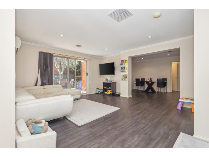 Set at the end of a quiet cul-de-sac, this three-bedroom home (with a versatile study that could serve as a fourth bedroom) offers comfort, privacy, and convenience. The main bedroom features a walk-in robe and ensuite, while the light-filled living and dining area opens to a private alfresco deck. The modern kitchen includes gas/electric cooking and a dishwasher. Additional features include a double auto garage, ducted heating and cooling, and low-maintenance gardens. • Three bedrooms plus a versatile study (could be used as a fourth bedroom) • North-facing living, dining, and kitchen areas • Modern kitchen with gas/electric cooking, dishwasher, and pantry • Private alfresco deck overlooking Bendigo Creek • Main bathroom, separate WC, and laundry facilities • Double auto garage with internal access • Ducted heating and cooling throughout • Low-maintenance gardens and off-street parking • Convenient location near Lansell Square, Crusoe Road playspace, Crusoe Reservoir, Bunnings, and public transport