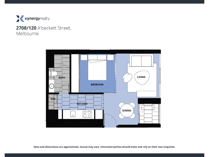 The size of the Unit for rent at 2708/120 A'Beckett Street, Melbourne is 0. To find more accurate property size information, please get in touch with the Agents at xynergyaltona.