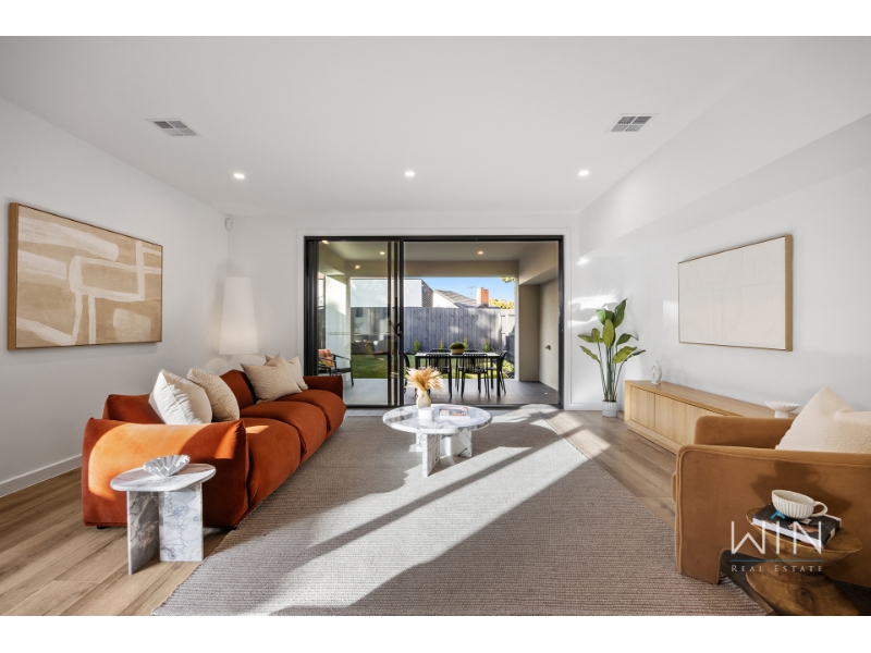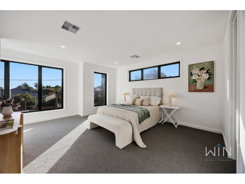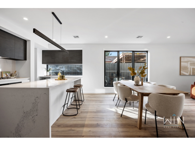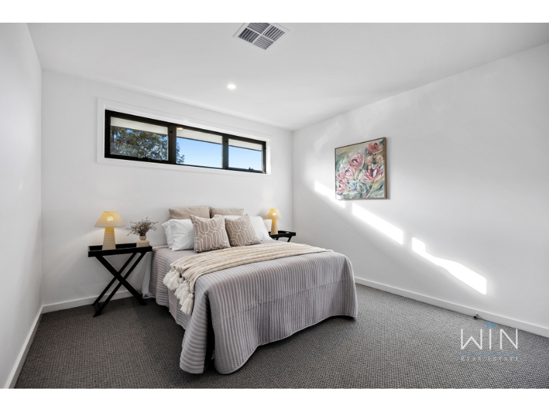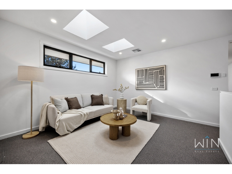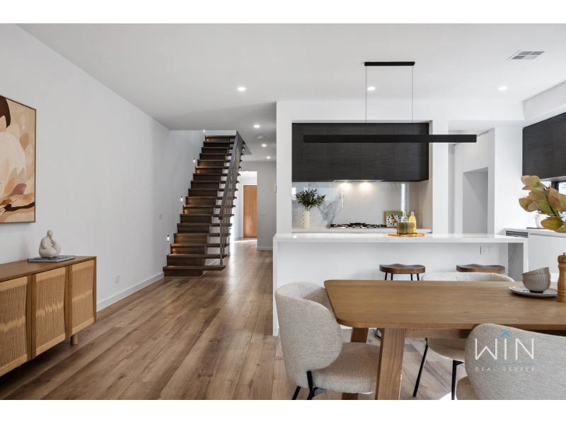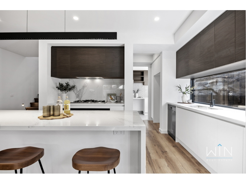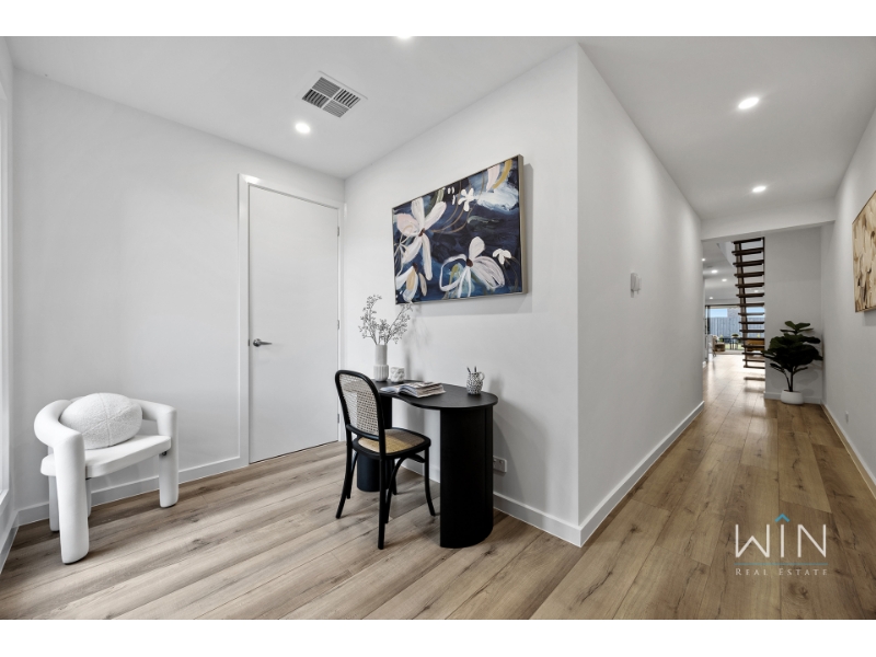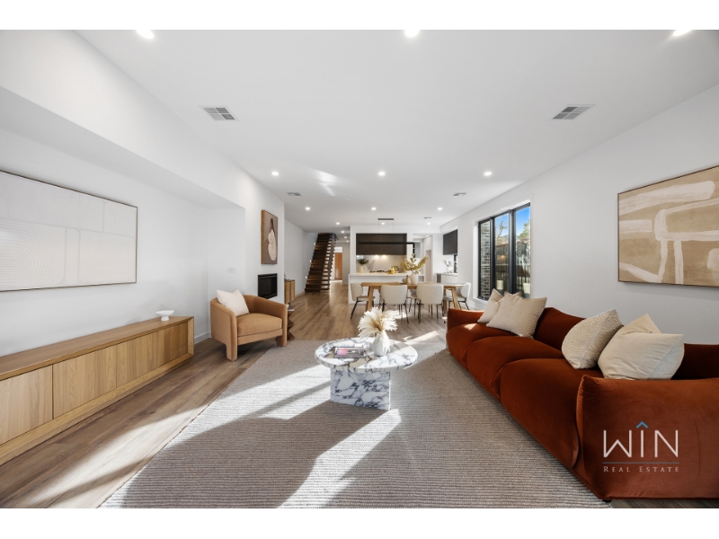 Ideally positioned beside a beautiful park, this brand new townhouse combines quality, space, and comfort in every corner. With two living areas and a bedroom on the ground floor, it's the perfect choice for large families, downsizers seeking spacious simplicity, or anyone who values premium design and effortless living. Step inside to a versatile study perfect for working from home, and a guest bedroom featuring tall windows, a walk-in robe, and a luxurious ensuite with dual basins and floor-to-ceiling tiles. The heart of the home is the open-plan kitchen, dining, and living area-anchored by a stylish gas fireplace and flowing seamlessly to a generous alfresco entertaining space. The kitchen showcases a striking monochrome palette with a waterfall stone island, Miele double ovens and dishwasher, and a fully fitted butler's pantry. The laundry includes extensive storage, space for a washer and dryer, and a hanging rack, while the spacious backyard is ideal for pets and outdoor enjoyment, complete with gas, water, and power connections. Upstairs, a skylit cantilever staircase leads to a bright rumpus room illuminated by natural light from two additional skylights. The palatial master suite offers a walk-through robe and a designer ensuite featuring twin showers, dual vanities, floor-to-ceiling tiles, and a skylight. Two further large bedrooms with built-in robes share a luxurious family bathroom with a freestanding bath and double vanity. Finished with gunmetal tapware, LED-edged mirrors, premium carpets, multi-zone heating and refrigerated cooling, and a remote single garage with an extended driveway for a second vehicle, this exceptional residence delivers the perfect blend of luxury and comfort in a highly sought-after location. PLEASE NOTE: Photo IDs are required for Win Real Estate's open for inspections. Open for Inspection Times and Property Availability are subject to change or cancellation without notice. Please refer to the listed inspection times. If no inspection time is available or you are not able to make the listed times please send enquiry to register your interest. We highly recommend registering for an inspection you are going to attend to avoid disappointment for cancellations. If you are registered to attend an inspection you will be notified via email if the inspection is cancelled.