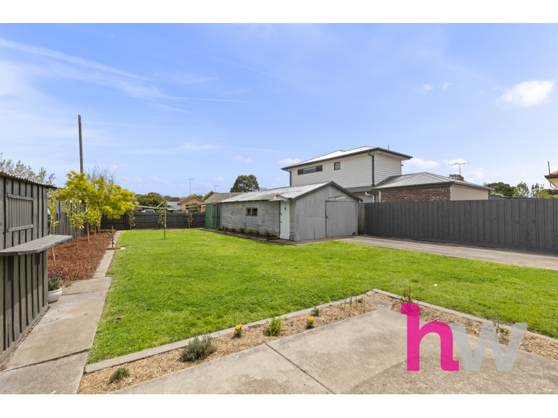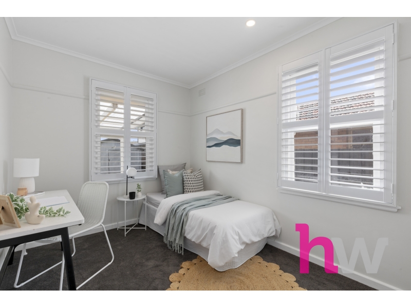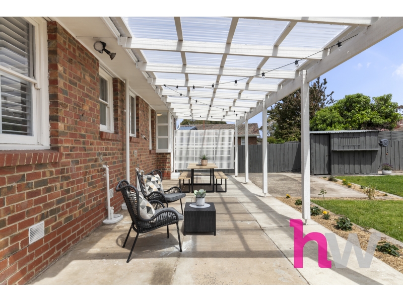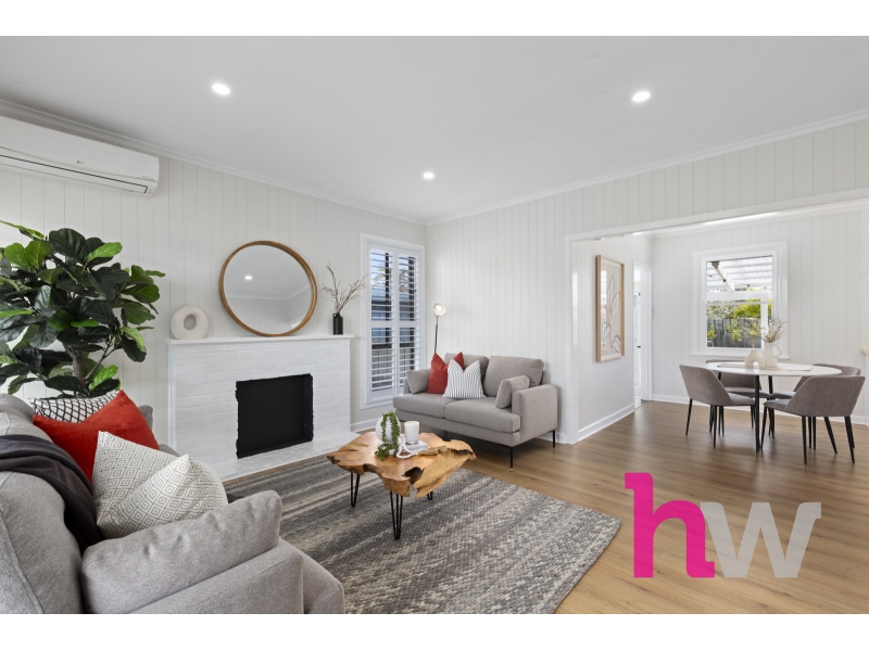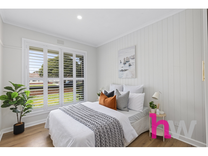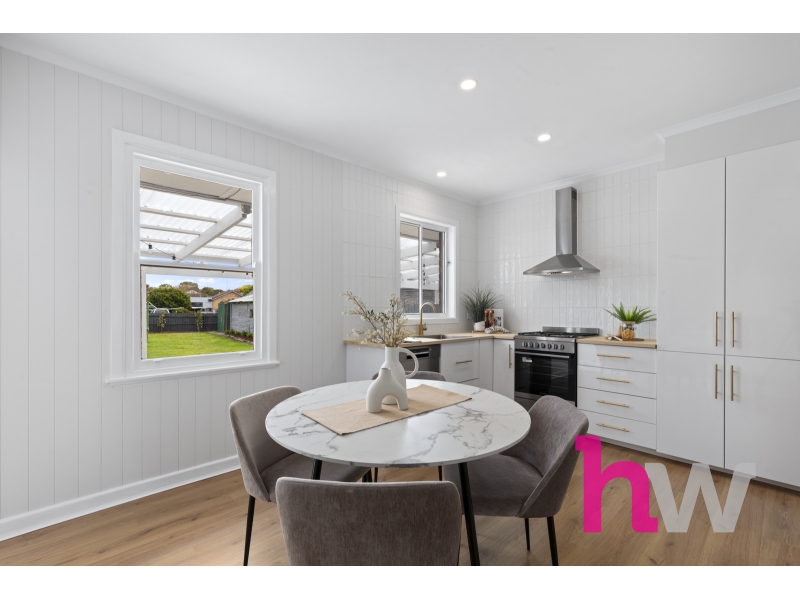 Set on an expansive 747m² allotment, this beautifully renovated brick veneer residence offers a seamless blend of contemporary style and timeless comfort in one of Geelong’s most sought-after and well-connected suburbs. From the moment you step inside, the home impresses with its fresh, modern aesthetic. Crisp new paintwork, sleek timber floorboards, and elegant white slate wall panelling create a cohesive and inviting interior. Plantation shutters throughout add sophistication and enhance natural light while maintaining privacy. The warm and welcoming living area provides a comfortable retreat, featuring a split-system heating and cooling unit for year-round comfort. The adjoining kitchen has been thoughtfully designed with both style and practicality in mind — complete with blonde oak veneer benchtops, gold hardware, gas cooktop, oven, and dishwasher. The combination of clean white finishes and gold accents adds a luxurious touch to the heart of the home. Three spacious bedrooms each include built-in robes, offering ample storage and natural light. The bathroom has been transformed into a contemporary haven, featuring striking floor-to-ceiling tiles, gold fittings, an elegant arched glass-framed shower and a white stone topped vanity. A generous laundry with abundant storage and outdoor access completes the internal layout. Outside, the property continues to impress. The expansive backyard offers plenty of space for entertaining, gardening, or family activities. The covered pergola with a clear roof welcomes sunlight while providing shelter for outdoor dining and relaxation. The home also includes a rear garage and additional garden shed, with ample off-street parking for two vehicles. Perfectly positioned in East Geelong, this home is just moments from quality schools, parks, and public transport, and only minutes from Bellarine Village Shopping Centre, the Geelong Botanical Gardens, Eastern Beach, and the Geelong CBD. Whether you’re a first home buyer, downsizer, or investor, this property represents a rare turnkey opportunity in a highly desirable pocket of Geelong. Key Features: • 3 spacious bedrooms with built-in robes • 1 modern bathroom with gold fittings and arched glass shower • Contemporary kitchen with white stone benchtops, gas appliances, and dishwasher • Freshly painted throughout with sleek timber floorboards • Plantation shutters and white slate wall panelling • Split-system heating and cooling in the living area • Large laundry with excellent storage • Expansive 747m² block with covered pergola and clear roof • Rear garage, garden shed, and parking for two cars • Close to schools, shops, parks, and the Geelong CBD *All information about the property has been provided to Hayeswinckle by third parties. Hayeswinckle has not verified the information and does not warrant its accuracy or completeness. Parties should make and rely on their own enquiries in relation to this property.