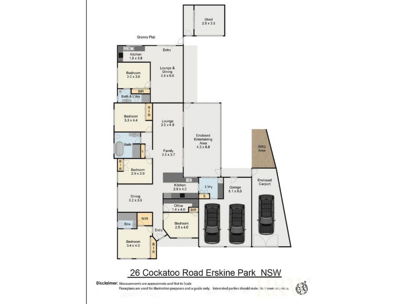 This beautifully presented four bedroom home is perfectly located in the quiet suburb of Erskine Park! WHAT WE LOVE ABOUT THIS PROPERTY: - Luxury living with ducted air conditioning and plantation shutters, offering a perfect blend of functionality and flexibility - 4 spacious bedrooms with built-in robes and ceiling fans - Study or home office with complete fit-out & door for quiet time if needed - Designer gourmet kitchen with gas cooking and double oven - 2 stylish bathrooms, ensuite with double overhead shower rose; main with free standing bath tub - Indoor outdoor sunroom for additional covered entertaining or expanding living area\ - Outdoor kitchen BBQ area, covered - Double garage with remote control door; *additional secured single carport with storage to rear not included* - Manicured gardens with stencilcrete drive; Separate secure garden shed with roller door *Attached Granny Flat also available for lease separately* Private entrance for complete independence; 1 large bedroom with built-in robe; ensuite access bathroom with combined laundry; Modern kitchen & open plan living area with split system air conditioning - Fully fenced yard with garden shed Disclaimer: The information provided has been sourced from reliable channels, but we cannot guarantee its accuracy and do not accept responsibility for any errors or omissions. Interested parties should conduct their own enquiries and exercise their judgment to verify the information for their own purposes. Images are for illustrative purposes only and may not reflect the final design or finishes.