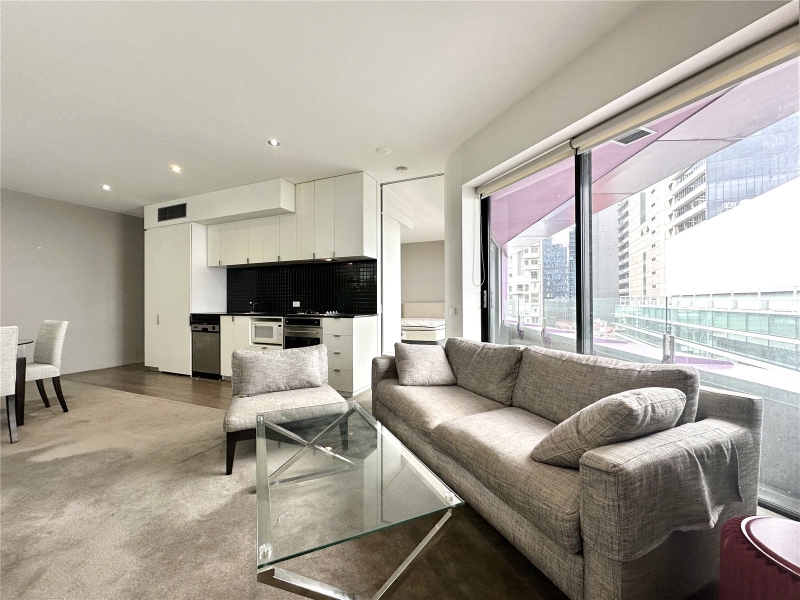 FURNISHED - This modern and spacious 1 bedroom apartment in the heart of Melbourne’s CBD will impress. Situated above Melbourne’s QV complex, you can enjoy retail stores, restaurants, cafe and much more, all at your fingertips! Accommodation: Comprising open plan lounge dining area, modern kitchen with microwave and fridge, bedroom with BIR and bathroom with laundry facilities. Disclaimer: *Views shown are indicative only and may be from a higher or lower level. Furniture is for display purposes only and might not be included. Any dimensions shown are approximate. Any areas shown indicate total approximate titled area. *Please note this building has an embedded network for one or more utility supplies. For further information please speak to your Property Consultant.