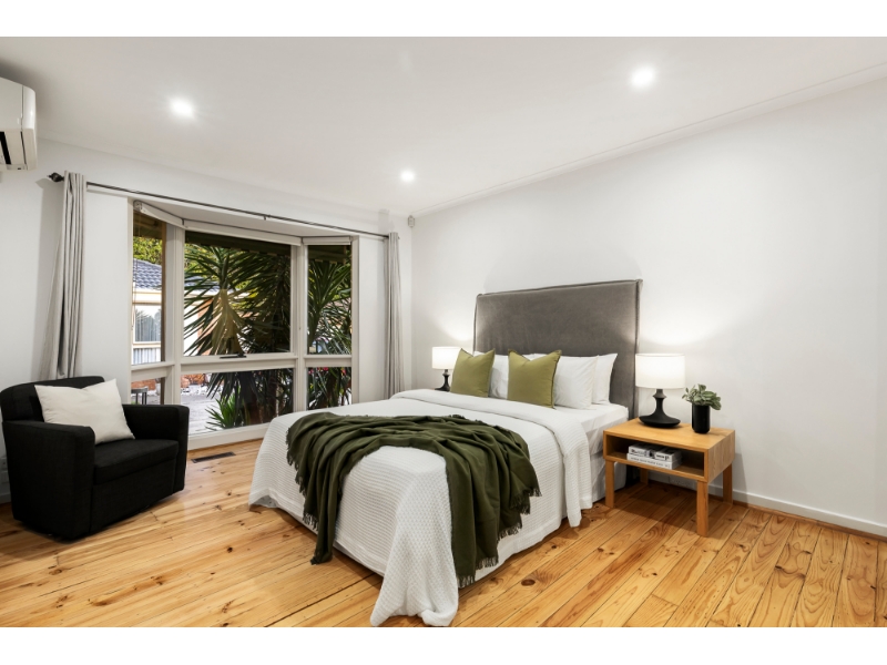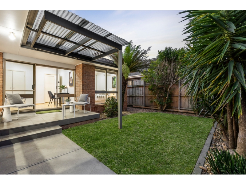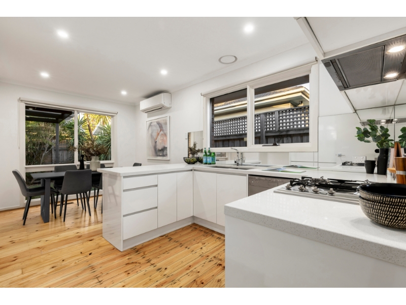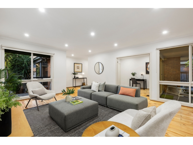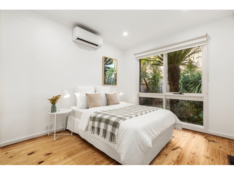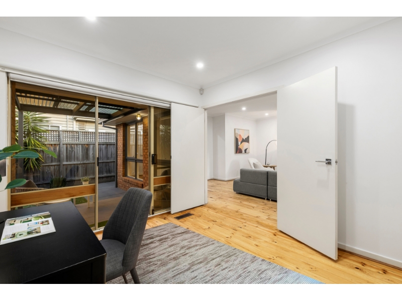This beautifully reimagined single-level villa exemplifies how timeless design can be transformed into a contemporary sanctuary for the style-conscious. The layout has been thoughtfully designed to maximise light & space, offering a sophisticated open feel, superb lifestyle appeal & low-maintenance, contemporary living. Positioned within the prized Caulfield South Primary School zone & moments from Princes Park, transport & vibrant shopping strips, it offers a generous light-filled living room that flows seamlessly to a dining zone served by a sparkling stone kitchen with premium Smeg appliances. The expansive master suite is complete with built-in robes & a private ensuite. Providing flexibility for modern living is a second bedroom with built-in robes & a study/third bedroom with outdoor access. Designed for year-round enjoyment, the tranquil deck & landscaped garden bask in northern sunshine, creating the perfect setting for alfresco relaxation & entertaining. A striking family bathroom with separate toilet, wide entry foyer, hallway storage, separate laundry, polished floorboards & a double garage further enhance the home’s effortless functionality. Comfort is assured with ducted heating & reverse-cycle air conditioning.
