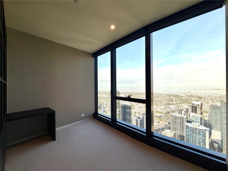 UNFURNISHED - Opulence, luxury and function, all in the one abode? This stunning 3 bedroom home nestled in the clouds on level 80 at Australia 108 shows that you truly can have it all! With soaring views over Melbourne and an unbeatable location, be the first to call this apartment home. This luxurious apartment features breathtaking views with floor to ceiling windows, timber flooring throughout and two car spaces offering true meaning to chic inner city living. This abode offers quality fittings and finishes throughout, with the master bedroom featuring a walk-through robe, opening up to an expansive private ensuite with bath tub, double shower and his and hers sinks. The two other generously sized bedrooms boast mirrored robes, breathtaking views and their own private bathrooms. Continue through to the living area to see the stunning yet functional timber flooring and breathtaking kitchen; featuring built-in appliances, natural stone bench’s and plenty of functional storage space, as well as a breakfast bar at the island bench, the modern entertainer will be in heaven! Designed with resort lifestyle in mind, the facilities at Australia 108 are like no other; dont miss out on enjoying the lap pool, sauna, spa & steam rooms; gym with premium exercise equipment; private theatre; virtual golf room; sky dining room; outdoor BBQ area, 2 infinity edge pools overlooking the Royal Botanic Gardens and St Kilda Rd and the breathtaking sky garden. Additional features include 2 secure parking spaces, storage unit, secure swipe entry and intercom, concierge and building manager. Dont miss out on the opportunity to inspect this gorgeous home! Disclaimer: *Views shown are indicative only and may be from a higher or lower level. Furniture is for display purposes only and might not be included. Any dimensions shown are approximate. Any areas shown indicate total approximate titled area. *Please note this building has an embedded network for one or more utility supplies. For further information please speak to your Property Consultant.