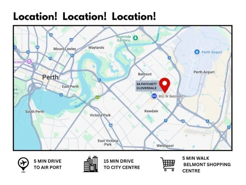 Kewdale is home to several parks and recreational areas, perfect for outdoor activities and relaxation. The Belmont Forum Shopping Centre is also nearby, offering a wide range of retail and dining options. Additionally, there are several schools and educational institutions in the area, making it an ideal location for families with children.
